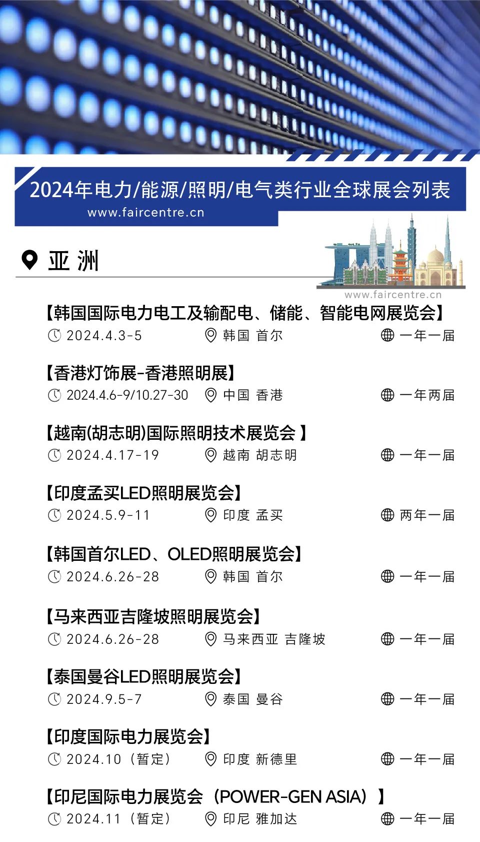 2024年菲森特电力照明行业全球展会列表