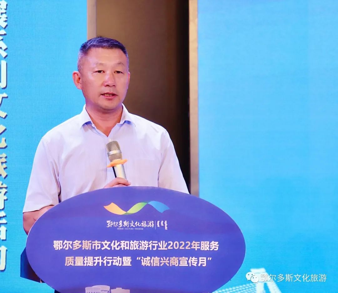 致辞强调,各文旅企业要把提升服务质量、文明诚信经营作为企业的立身之本,要主动落实行业标准,积极开展创建工作,引导文明诚信经营,营造良好营商环境,持续打响“鄂尔多斯,一座有温度的城市”文化旅游形象品牌。
