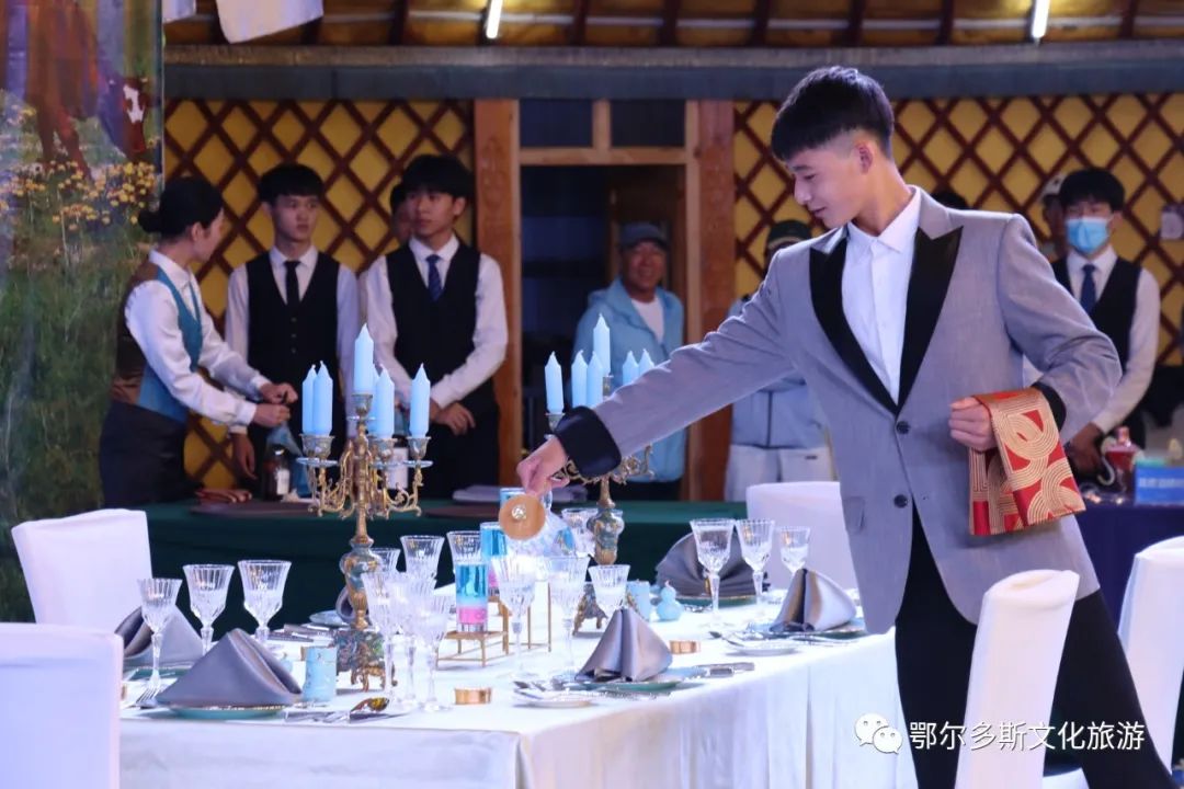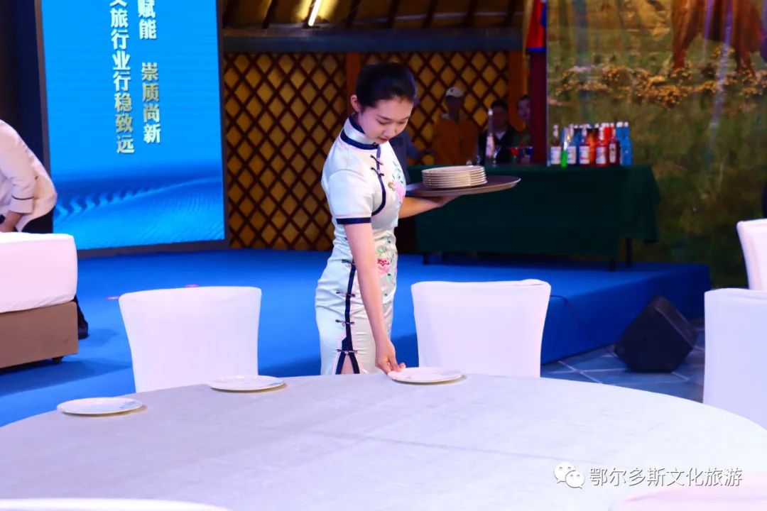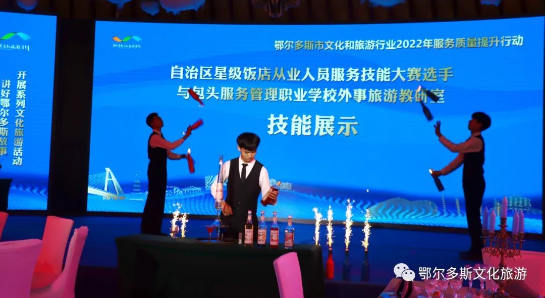 活动的主要内容有,为国家甲级民宿“峡谷雅宿”、国家级5A级旅行社、自治区级4A 级旅行社授牌,文旅企业代表共同宣读“诚信为本 倡导文明”倡议书,全市文化和旅游企业代表签订了文明诚信经营承诺书。活动中,参加全区星级饭店从业人员服务技能大赛获奖选手与包头服务管理职业学校学生同台竞技展示服务技能,进行了中餐宴会摆台、西餐宴会摆台、中式铺床和鸡尾酒调制项目的展示,通过现场教学和展示,引导文化旅游企业增强标准化意识,提升服务质量水平。