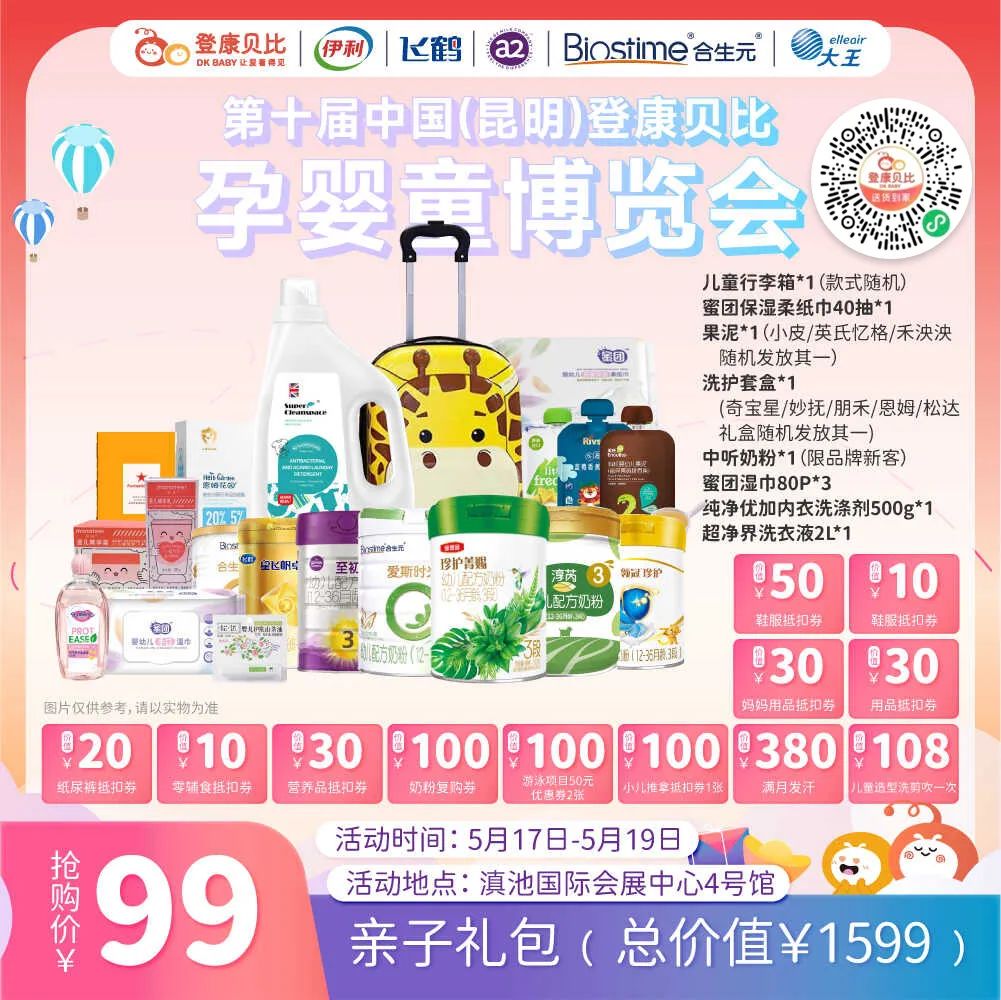 【领取地点】昆明滇池国际会展中心4号馆,第十届中国(昆明)登康贝比孕婴童博览会签到区;