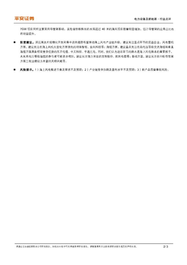 风险提示。1)海上风电推进节奏及需求不及预期;2)产业链竞争加剧及盈利水平不及预期;3)新产品质量事故风险。