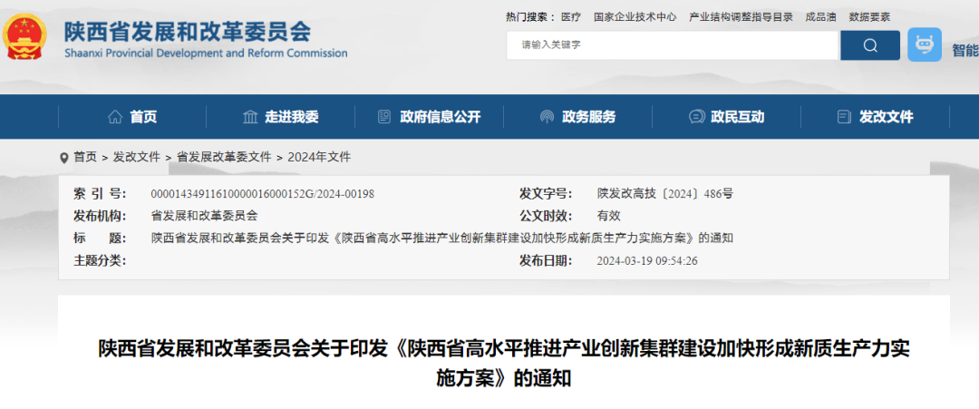 省发改委 关于印发《陕西省高水平推进产业创新集群建设加快形成新质生产力实施方案》的通知