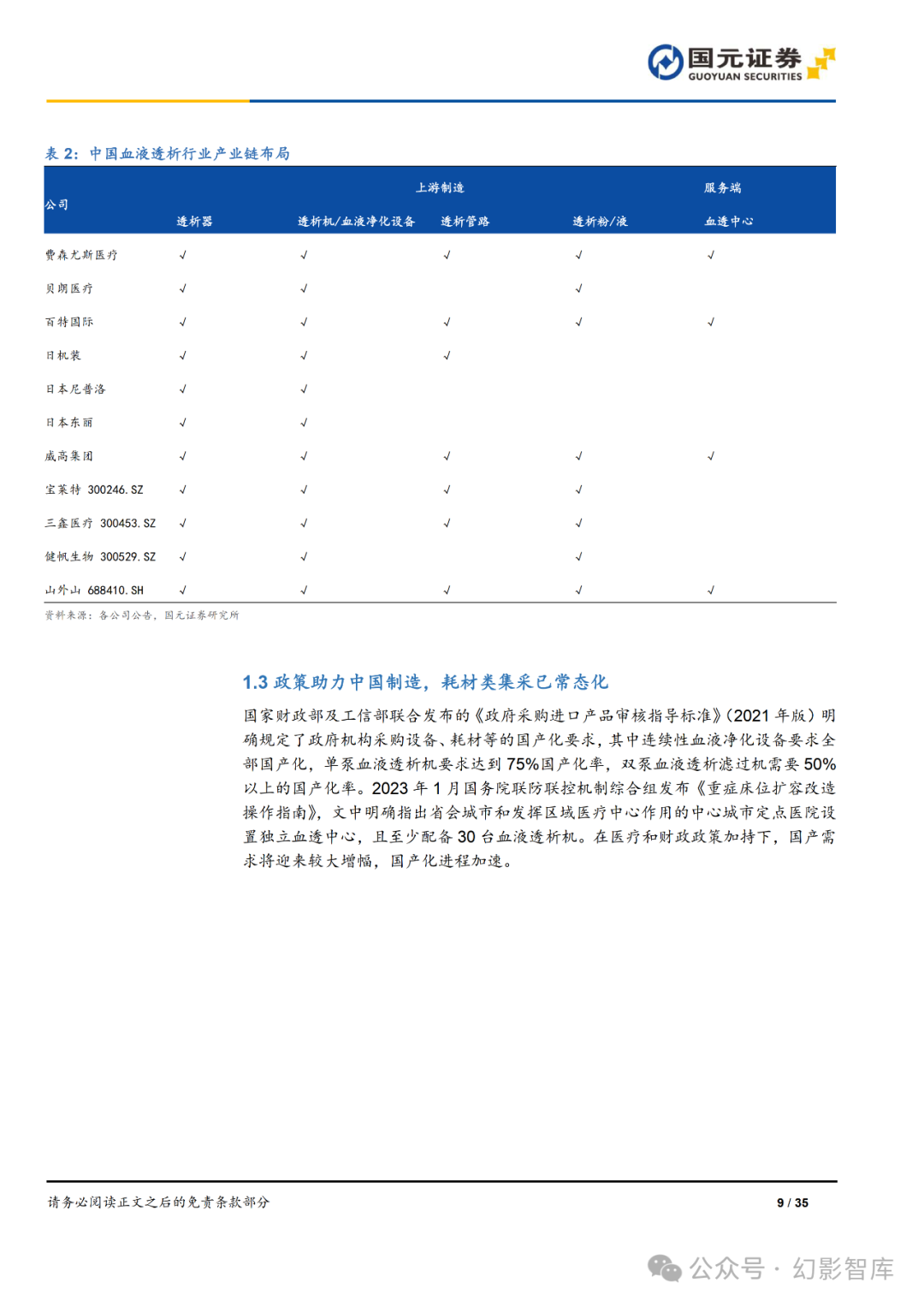 血液透析行业深度报告:血液透析持续高景气度,看好全产业链布局企业-20240320-国元证券-35页.pdf
