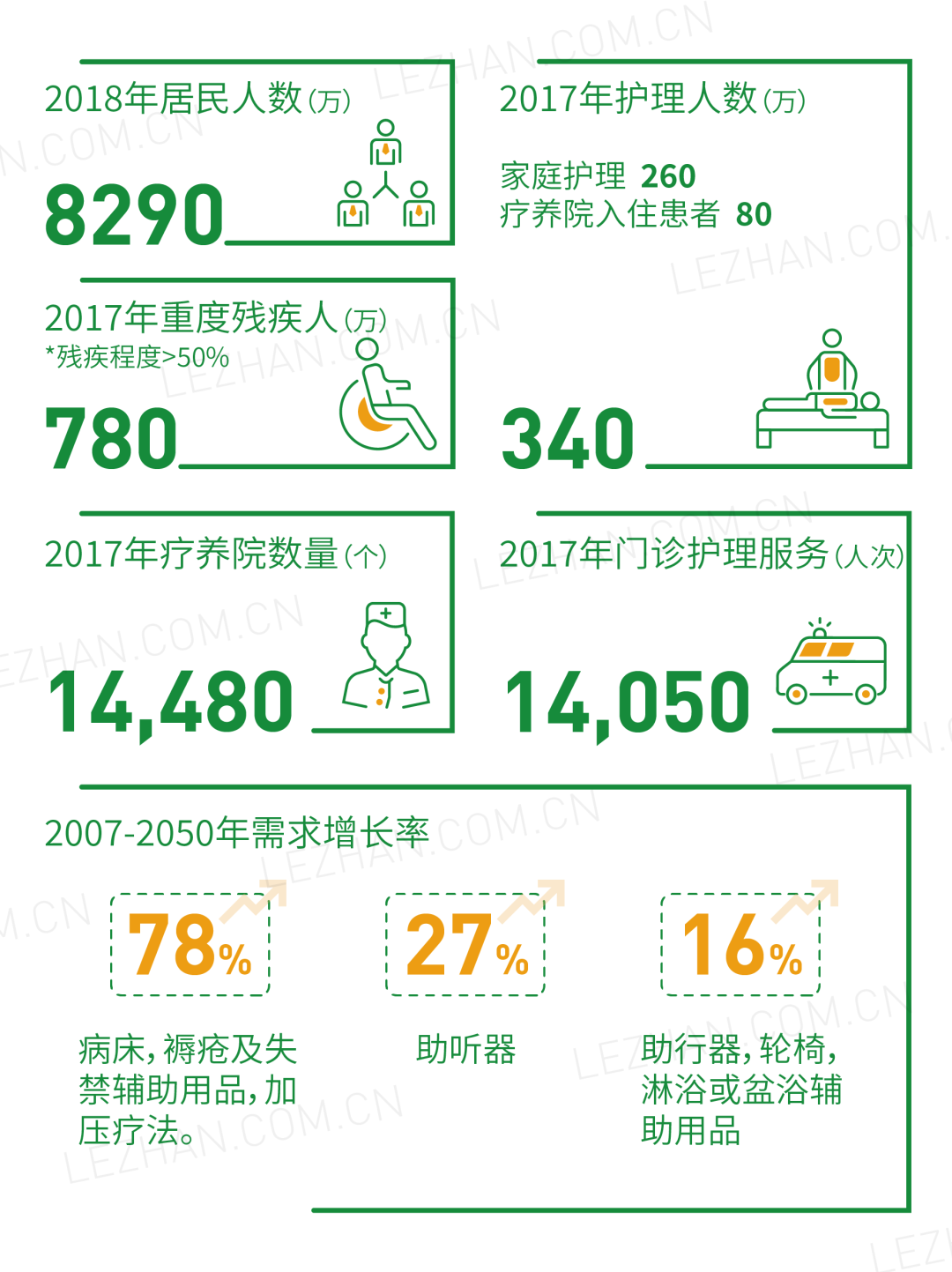 2017年,德国康复医疗与护理产品市场已展现出约90亿欧元的庞大规模,自此便不断开拓着广阔的发展前景,呈现出持续且强劲的增长势头。每年,约有1200个康复设施为190至200万名患者提供治疗服务。