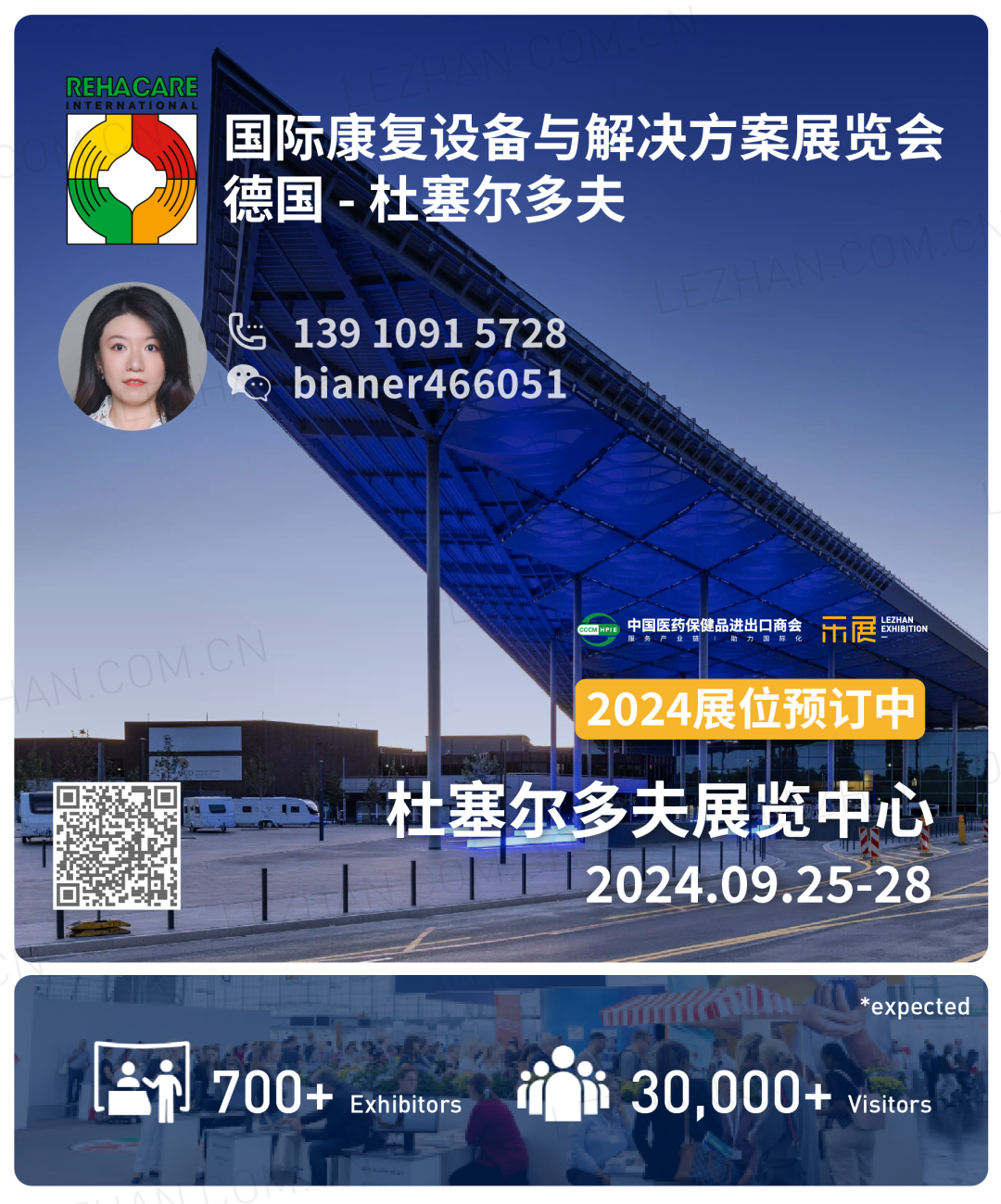 REHACARE德国国际康复设备与解决方案展不仅为国内相关企业生产商提供了一个最佳的推广平台,用以树立品牌形象,更是国内企业进军欧洲市场的黄金机会。目前,展位预订工作正紧锣密鼓地展开,若您有参展意向,请务必抓紧时间与我们取得联系,共同拓展欧洲市场!