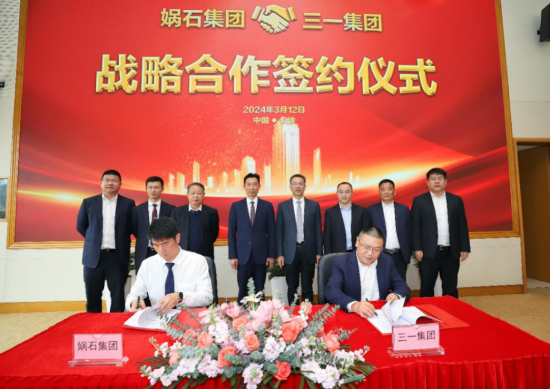 3月12日,三一集团与娲石集团在长沙三一集团总部签署战略合作协议。娲石集团党委书记、董事长魏华山,三一集团高级副总裁、泵路事业部董事长向儒安出席并见证签约。