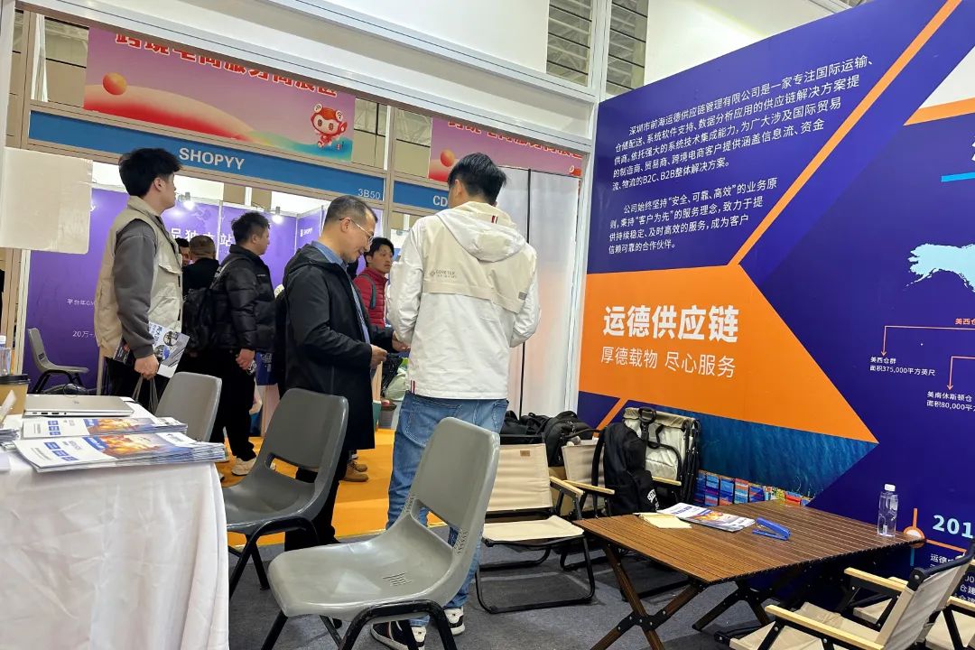 运德的现场同事为参展客户热情地介绍公司业务、专业的海外仓服务与解决方案,且为客户在跨境出海中遇到的各项难题答疑解惑。在交流中获取客户需求,为其提供个性化定制的物流方案,为卖家们降低物流成本,提高市场竞争力,吸引众多客户前来咨询。