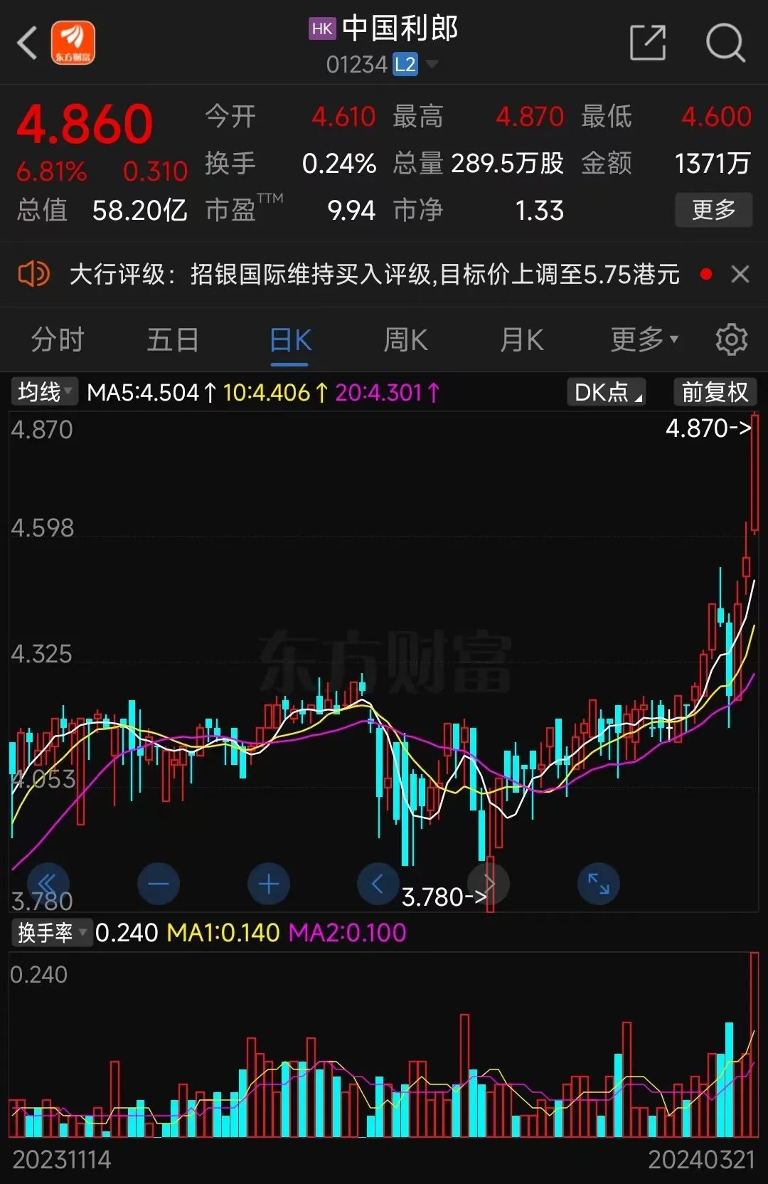 不过,今天股价大涨6.81%。