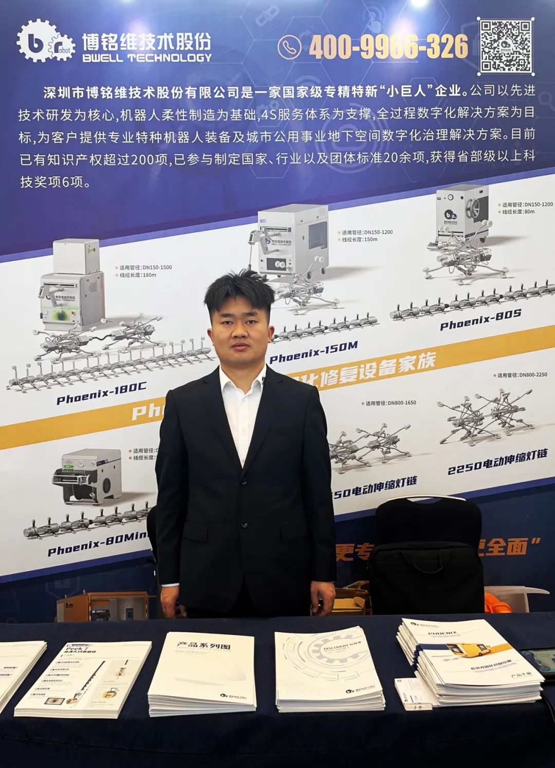 展会现场,博铭维全方位展示了Dolphin-L5管网检测机器人、Peek 7高清无线潜望镜、Pangolin one管道切割机器人等多款尖端新品,生动演示了非开挖技术如何巧妙地实现在复杂城市地下环境中进行精准检测与高效维护修复的全过程。通过实物展示、视频解说以及互动体验,博铭维的技术实力赢得了参会者的高度认可和广泛赞誉。