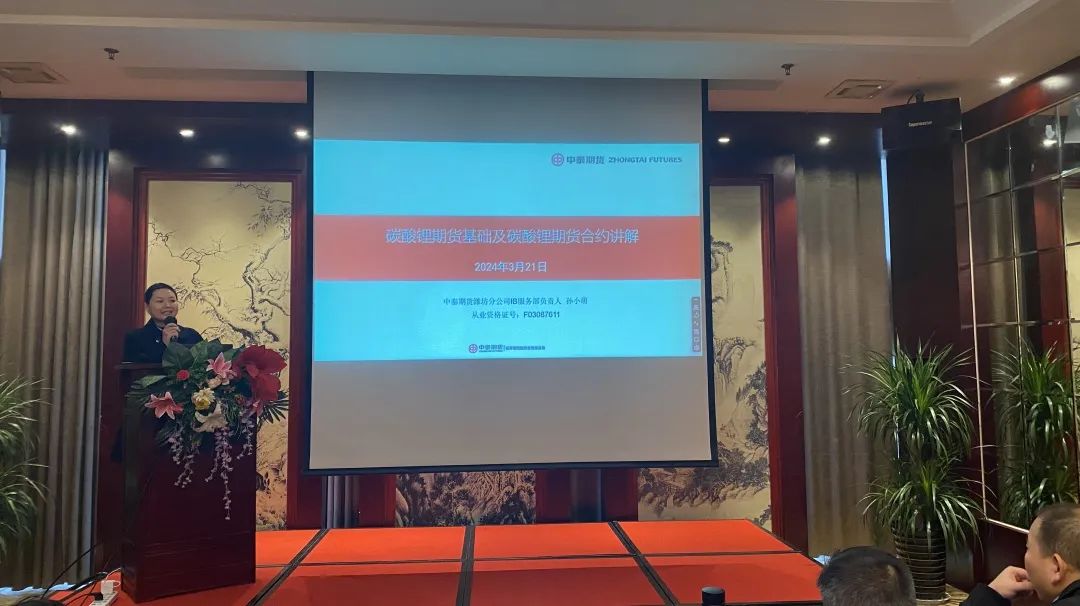 为提高锂电产业链应对价格波动能力,助力上下游企业提升风险管理水平,聚力打造“泰山锂谷”,3月21日,市金融发展服务中心、市工业和信息化局联合中泰证券、中泰期货举办助力碳酸锂产业发展暨期货期权培训交流会。我市瑞福锂业、华劲电池材料、丰融新材料、宏匀科技、兴元新能源科技等碳酸锂产业上下游骨干企业、部分驻肥银行、保险机构负责人参加活动。