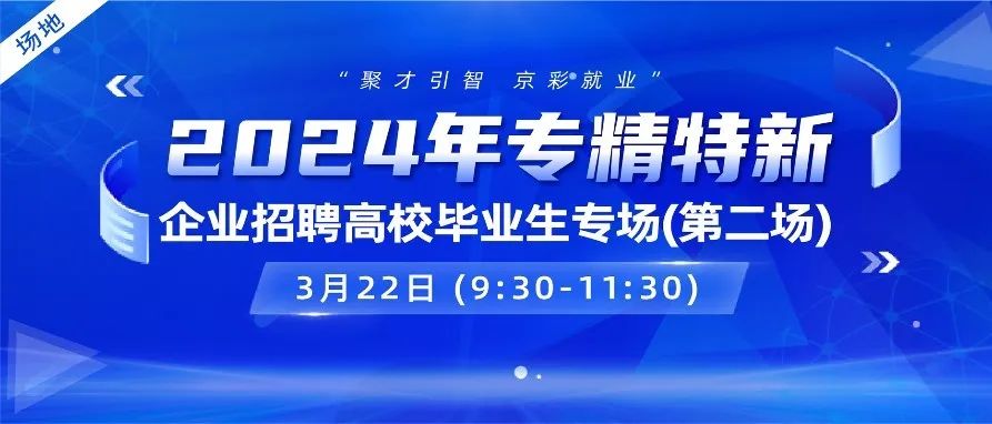 为进一步贯彻落实党中央、国务院关于做好高校毕业生就业工作的指示精神和决策部署,促进毕业生高质量充分就业,助力首都专精特新企业加快形成新质生产力,北京市教育委员会和北京市经济和信息化局联合主办,北京高校大学生就业创业指导中心及北京市中小企业服务中心承办的2024年专精特新企业招聘高校毕业生专场(第二场)将于3月22日上午举办。