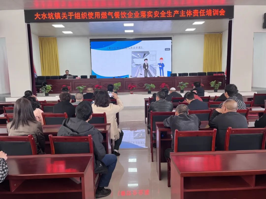 为认真贯彻落实习近平总书记关于燃气安全重要指示批示精神,切实提升燃气安全隐患排查整治力度,从源头上防范和遏制安全生产事故发生,3月21日,大水坑镇召开使用燃气餐饮企业落实安全生产主体责任培训会,大水坑镇餐饮从业人员参加了培训。