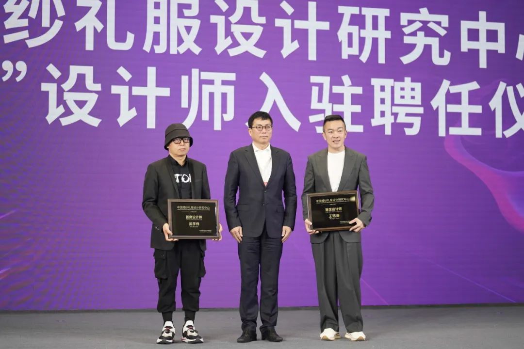 开幕式现场,苏州虎丘婚纱城与中国服装设计师协会联合发布婚纱产业发展规划,探索婚纱产业发展的新机遇、新路径、新举措。同时苏州虎丘婚纱城与中国服装设计师协会携手成立的中国婚纱礼服设计研究中心也正式宣布启用,标志着苏州婚纱产业在设计创新方面迈出了坚实步伐。王钰涛、武学伟两位中国服装设计行业领军人物、中国时装设计最高奖“金顶奖”获得者现场签约入驻设计研究中心,中国服装设计师协会专职副主席谢方明向设计师颁发聘书,他们的加入将为苏州婚纱产业注入强大的设计力量。