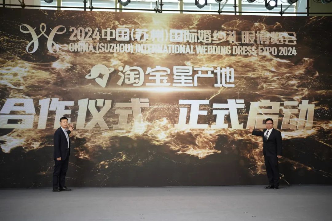 开幕式当天,一系列精彩纷呈的活动也同步展开。全国婚纱礼服产业高峰论坛、中国丝绸非遗面料与国潮婚服大师对话、婚纱礼服原创设计秀场等活动的举办不仅展示了苏州婚纱产业的最新成果和前沿设计理念,也为行业内外的人士提供了深入交流与合作的平台。此外,与淘宝共同推出的“淘宝星产地•婚纱节”活动,通过全域联动的方式,为商家提供更广阔的展示与销售平台,提升了虎丘婚纱城的市场影响力,促进了商家成交。