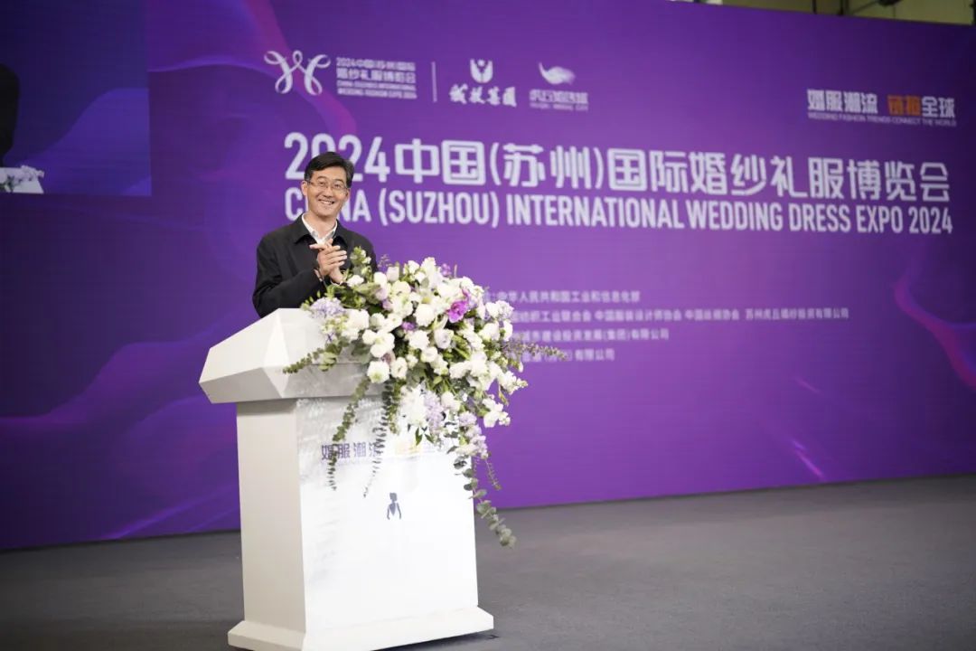 夏令敏在致辞中表示,中国(苏州)国际婚纱礼服博览会的举办是苏州婚纱礼服产业向世界展示实力与成果的重要平台。希望通过这一盛会,进一步推动苏州婚纱礼服产业的时尚化、品牌化、国际化的进展,汲取更多优质资源,加速发展新质生产力,为建设纺织现代化产业体系贡献新的力量。