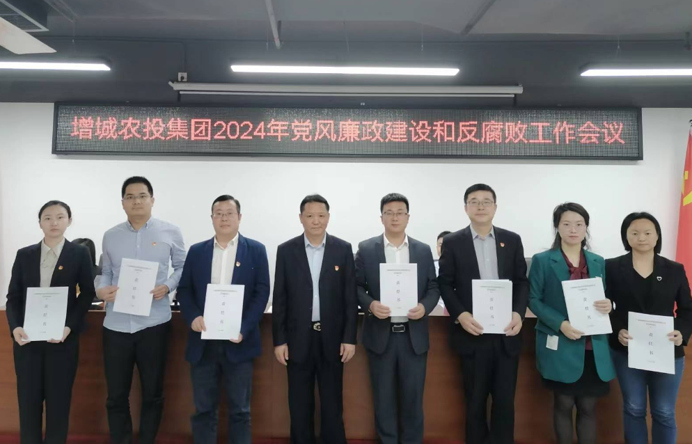 会上,农投集团党支部书记、董事长刘克和同志,与各部门、各二级企业负责人签订了2024年度党风廉政建设责任书。