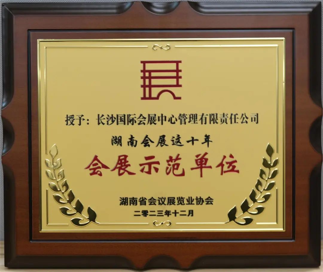 长沙国际会展中心荣获“湖南会展这十年”会展示范单位奖。