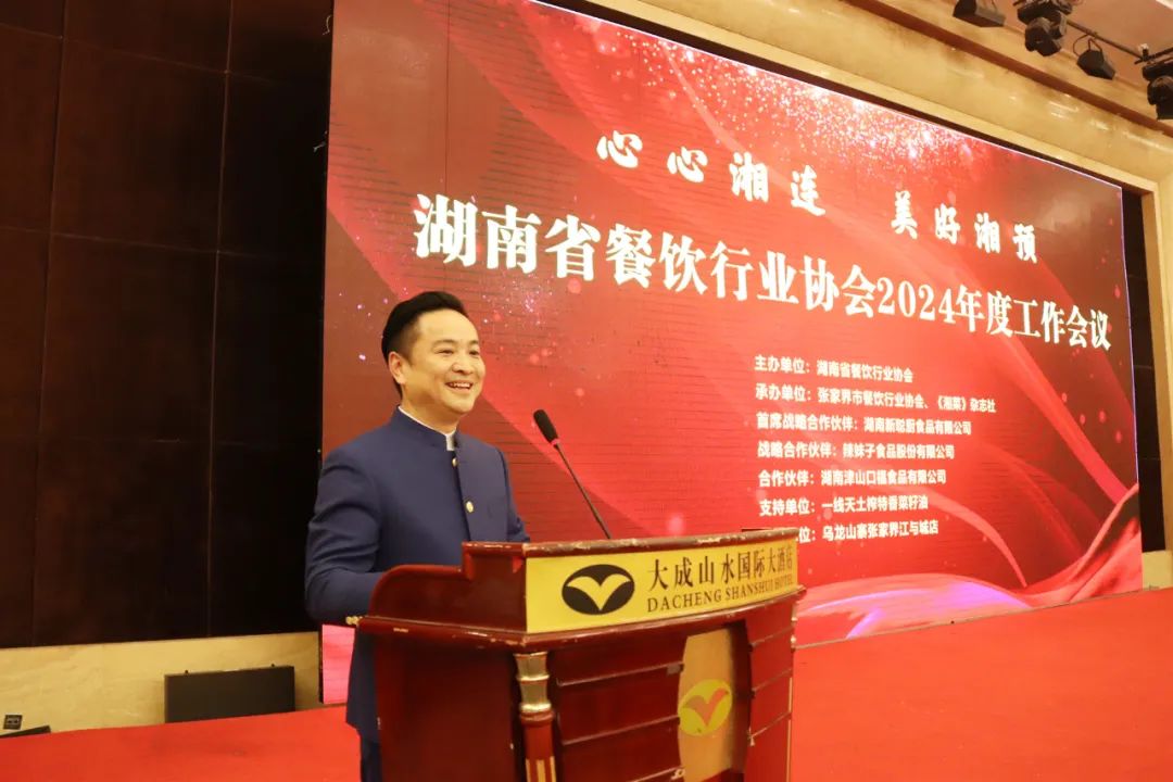 3月19日,湖南省餐饮行业协会2024年工作会议在张家界举行。世界中餐业联合会会长邢颖,湖南省餐饮行业协会会长刘国初,湘菜大师王墨泉、许菊云、聂厚忠,湖南省餐饮行业协会副会长兼秘书长韦巍,湖南省餐饮行业协会副会长、湘菜产业链委员会理事长黄惠明,湖南省餐饮行业协会副会长、《湘菜》杂志执行总编刘科,世界中餐业联合会副秘书长王文江,以及湖南省十四个市州餐饮行业协会会长、秘书长、名厨委主任等相关负责人与会。会议由湖南省餐饮行业协会常务副会长任伟政主持。