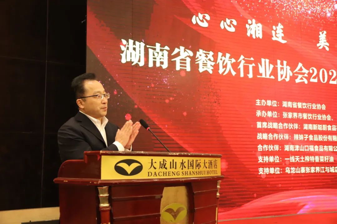 邢颖会长在讲话中说,湘菜作为中国传统的八大菜系之一,得到了蓬勃发展,2023年全国湘菜市场规模近2300亿元,同比增长33.6%。特别是近几年来,湘菜产业的发展速度不断加快、品牌企业发展的规模日益扩大。据统计,截止到2023年9月,湘菜门店数达到11.8万家,湘菜在国内外市场的影响力与日俱增,湘菜饮食文化建设成果丰厚,广大消费者对湘菜的喜爱程度越来越强,湘菜的发展面临着巨大的市场空间和很好的发展机遇。湘菜发展之快的核心经验是“三气”,即锅气(特色小炒)、人气(消费者认可的性价比)、市气(城市的烟火气氛)。他指出,当前全国各行各业深入贯彻落实党的二十大精神和中央经济工作会议精神,提出要把恢复和扩大消费摆在优先位置。今年全国商务工作会议明确了八项重点工作,第一条就是推动消费持续扩大,完善市场和流通体系。以“消费促进年”为主线,办好各类促消费活动。激发消费潜能,培育壮大新型消费,稳定和扩大传统消费,推进服务消费品质升级。希望湖南省餐饮企业科学研判形势,分析消费现状,研究消费趋势,制定促销方案,为湖南社会经济的发展作出餐饮行业的贡献。希望湖南餐饮业弘扬工匠精神,传承湘菜经典。弘扬中华饮食文化,要坚持烹饪手艺人精益求精、精雕细刻、精致出品,培育和造就出湘菜的大国工匠。相信湖南餐饮产业发展将向着食材的多样化、产品的标准化、经营的连锁化、品牌的国际化、链条的产业化方向高质量发展。