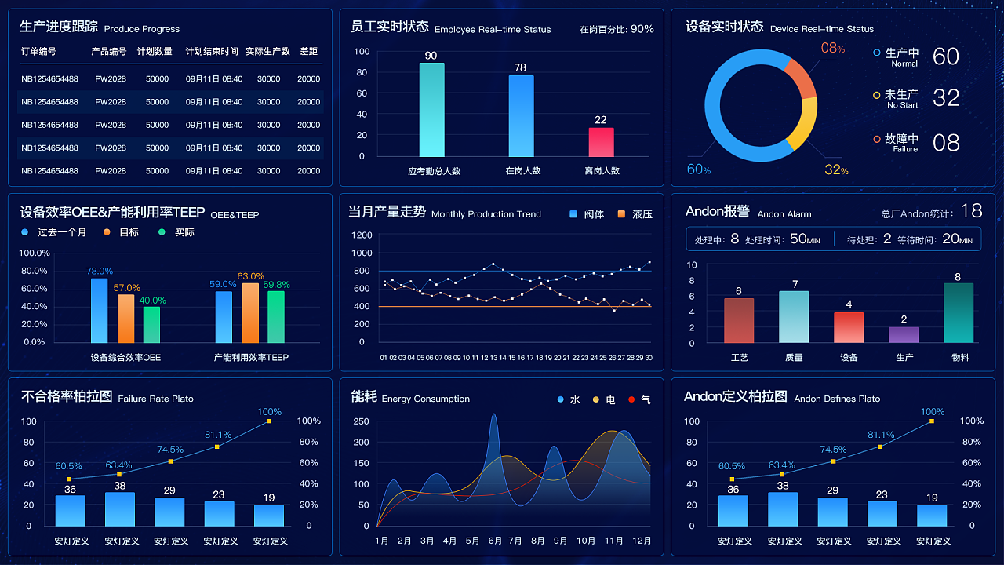 以前工厂数据都是通过纸质仓库数据,财务数据,下单,排单,生产进度都是人来盯。现在只要业务下单线上领导审批,直接订单就到车间里面去了,并且所有的单生产进度都可以在看板上一目了然。同时工厂管理者可以通过设备能耗,仓库成品和耗损数据管控整个工厂,降本增效。