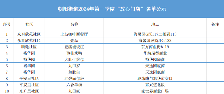 文明有礼丨朝阳街道2024年第一季度餐饮企业“放心门店”评选结果新鲜出炉!