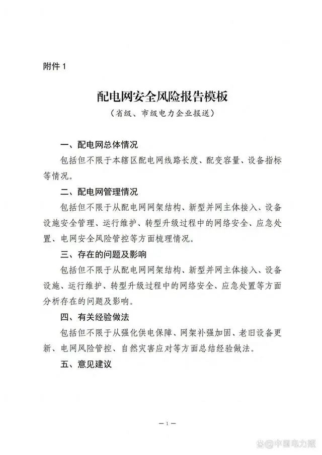 各有关电力企业要加强问题分析和经验总结,将配电网在安全运行、供电保障、防灾减灾和坚强可靠等方面存在的突出问题、经验做法和意见建议形成总结报告。各地市供电企业梳理分析形成市级公司总结报告,省级电力公司汇总各地市情况并将各地市报告作为附件,形成本省配电网总结报告,于4月30日前报送至当地省级能源(电力)管理部门和国家能源局派出机构。