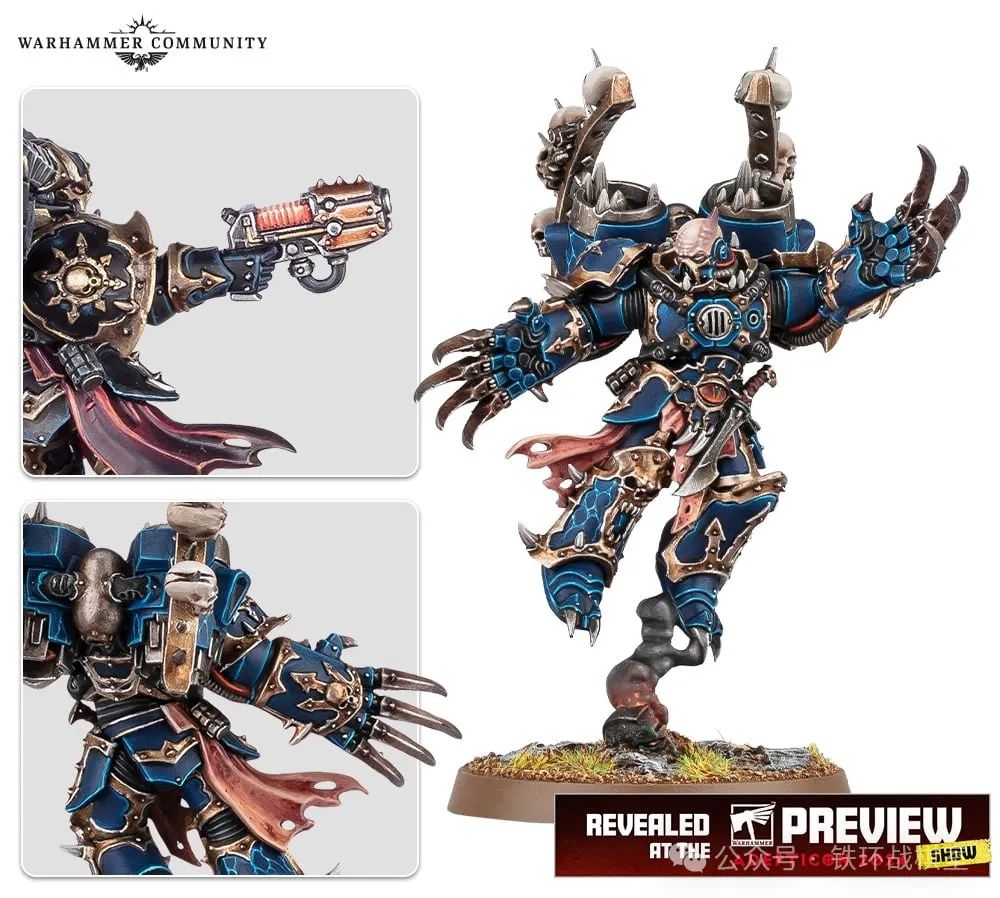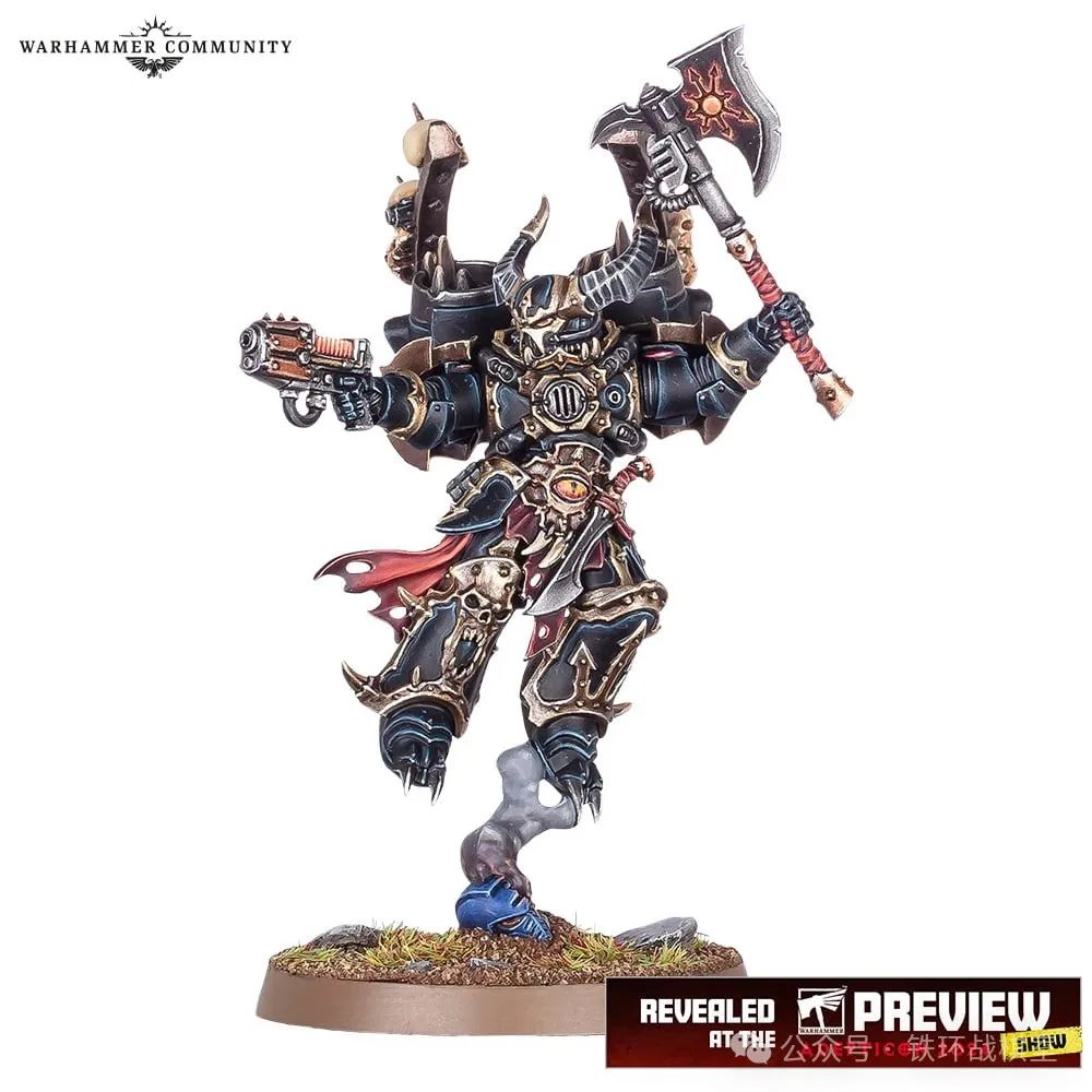 终于从魔法世界转换到科技宇宙。本次战锤40000部分公布的,便是已经预告过将在今年春季更新的混沌星际战士。本次混沌星际战士即将收获两款新模型——全新步行混沌领主和跳跃背包混沌领主。而为了庆祝他们的发布,两款战斗军大包(同圣诞包级别)即将在混沌星际战士更新之时一同发售——当然,每款大包内都分别包含了新人物模型。