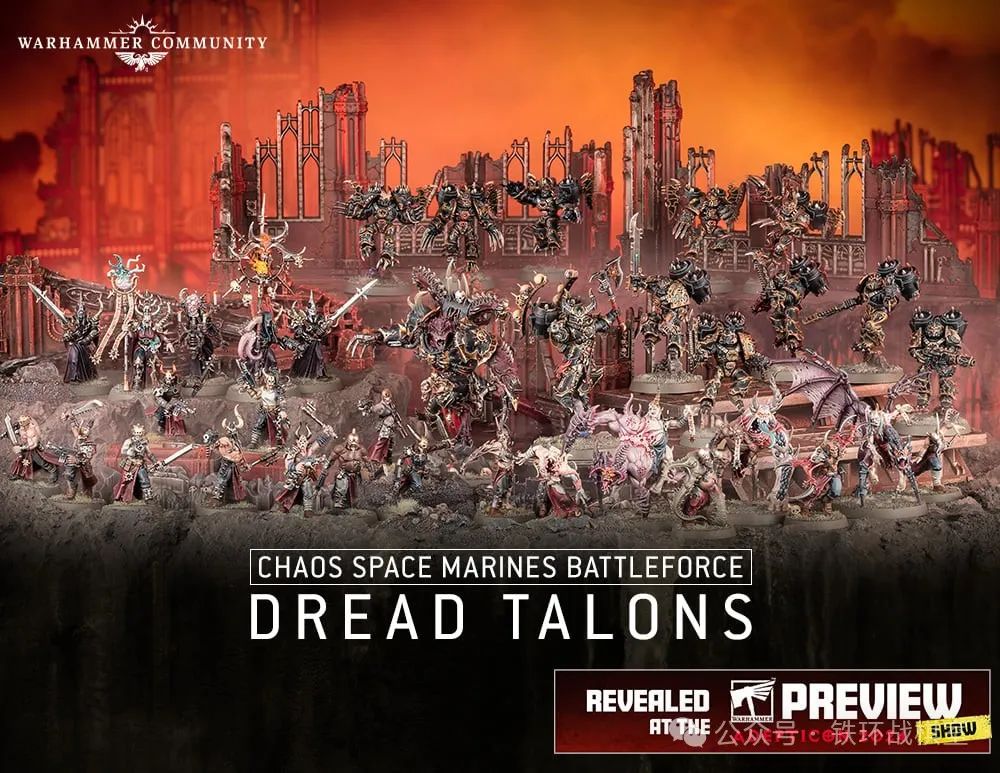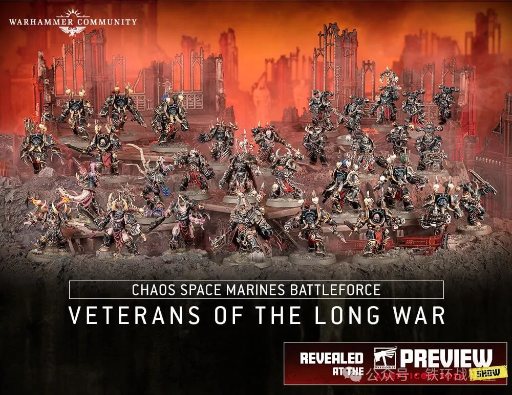 混沌星际战士战斗军大包“万古长战老兵”——内含1个全新步行混沌领主、5个附魔战士、10个混沌终结者、5个混沌神选、10个混沌星际战士。