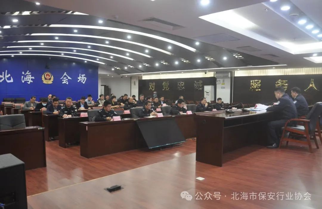 北海市保安行业协会黄一兵会长、胡会秘书长及17家保安公司负责人参加会议。