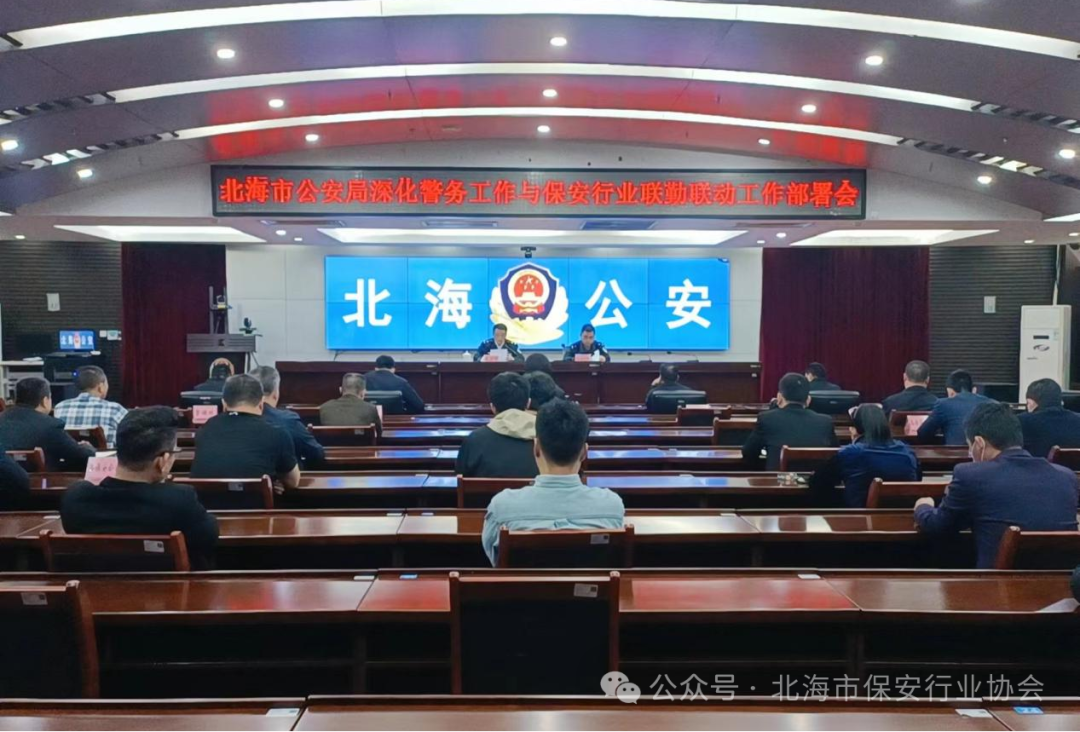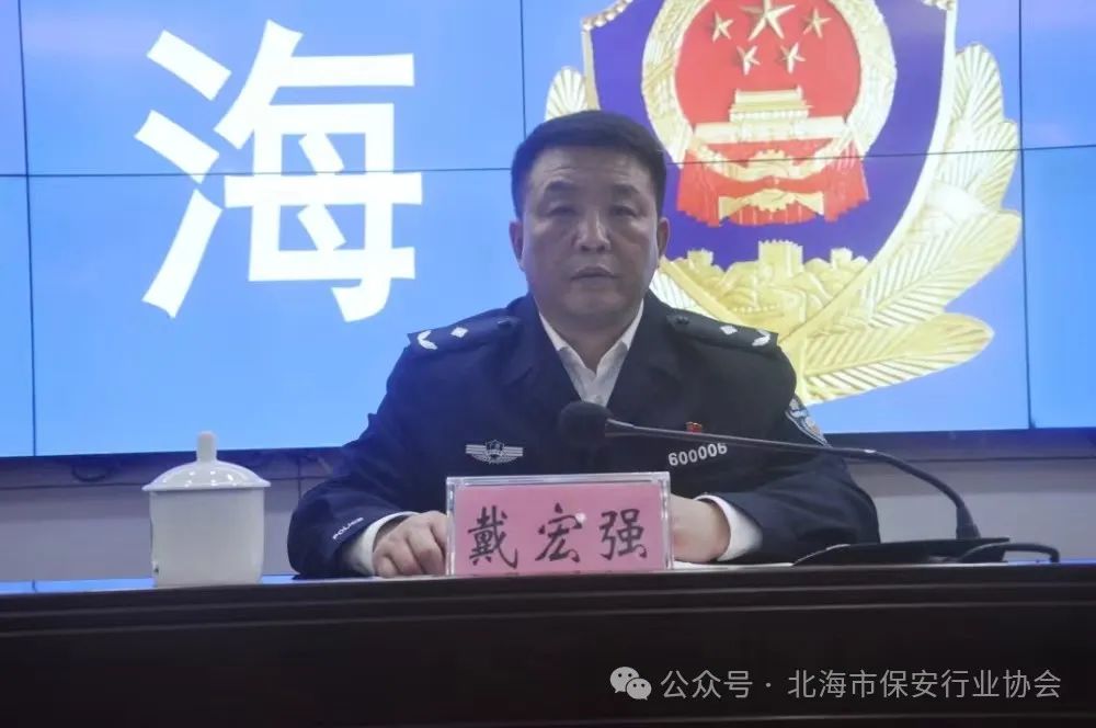 为贯彻公安部《关于深入推进警务工作与保安行业联勤联动强化社会治安整体防控的指导意见》要求,推进警务工作与保安行业有效联勤联动,全面深入动员全市保安力量参与社会治安防控体系建设,2024年3月21日上午9:30,北海市公安局召开北海市公安局深化警务工作与保安行业联勤联动工作部署会,会议由北海市公安局治安支队陈颖全副支队长主持,市公安局党委委员、副局长戴宏强出席会议并作重要讲话。