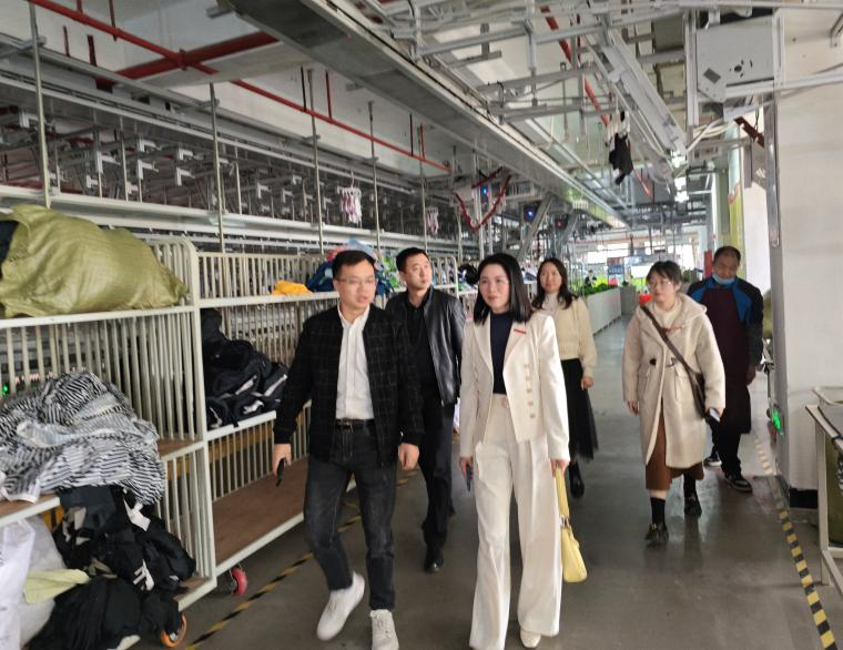 会后,赵文宏经理带领余琼莲老师一行参观了数码印花、绣花、智能化生产车间等场所。