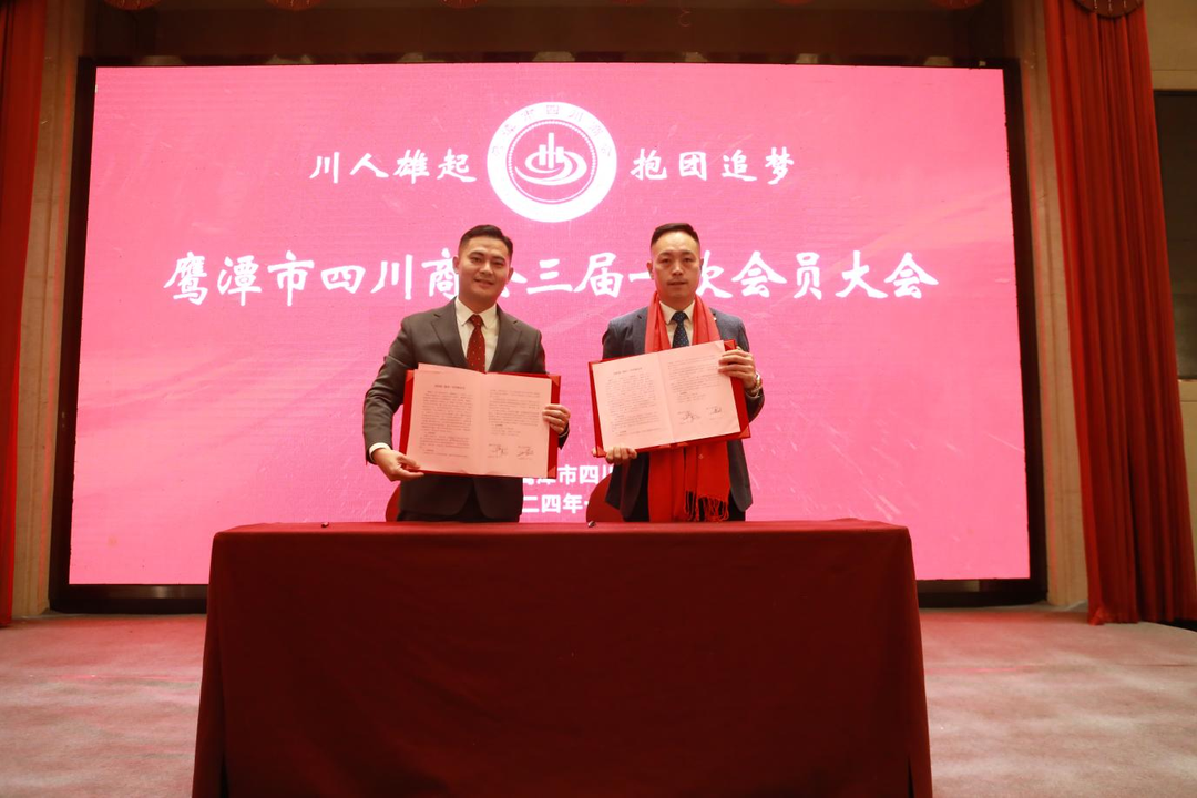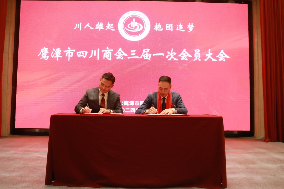 2024年1月22日下午16:00,中共宜宾市在闽流动党委书记、中心主任、厦门市宜宾商会顾问陶正洪和厦门市宜宾商会副会长黄卫国在鹰潭市沁庐豪生大酒店三楼豪生厅,参加“鹰潭市四川商会第三届换届大会暨2024年新春联欢会”。在大会上黄卫国代表厦门市宜宾商会与鹰潭市四川商会签订友好商会协议。