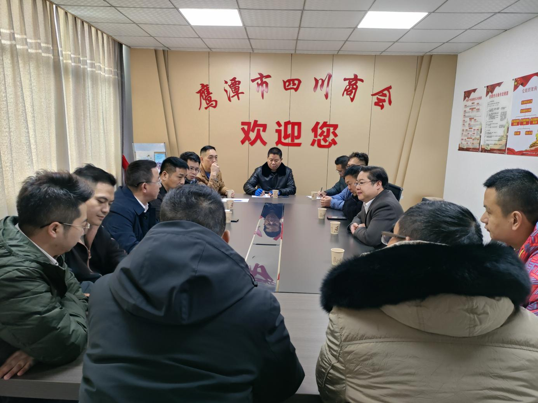 2024年1月23日下午15:00在鹰潭市四川商会会议室,中共宜宾市在闽流动党委综合管理委员、宜宾市驻福建省农民工服务中心组织厦门市宜宾商会、鹰潭市四川商会、赣州市四川商会、温州市四川商会就如何关心服务川籍宜籍务工人员、流动党员,返乡创业,为会员企业搭建服务平台,提高会员企业发展动力进行交流工作会。