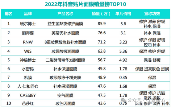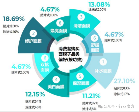 1)按质地分:贴片式面膜、水洗类面膜,睡眠面膜,剥离式面膜。