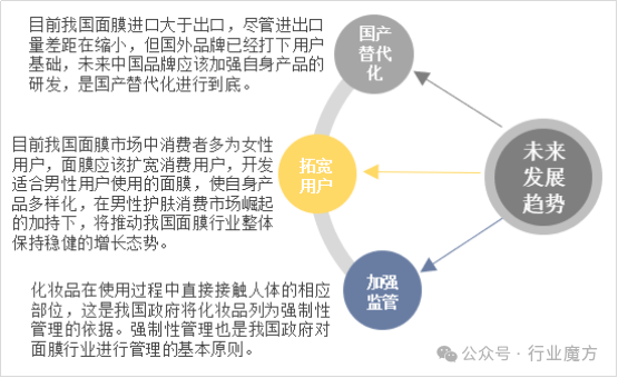 按照化妆品的定义,毫无疑问面膜属于化妆品,其管理符合我国对化妆品行业的管理特点。化妆品在使用过程中直接接触人体的相应部位,这是我国政府将化妆品列为强制性管理的依据。强制性管理也是我国政府对面膜行业进行管理的基本原则。我国政府对化妆品的强制性管理着重体现在化妆品产品上市前的注册备案制度,其中美白类产品实行注册制度,非特殊用途化妆品实行备案制度。未来我国应该加强面膜行业的产品检测监管,同时,面膜也要拓宽用户规模,开发男士面膜,使更多的消费者投入购买面膜消费中,拉动面膜行业经济增长。