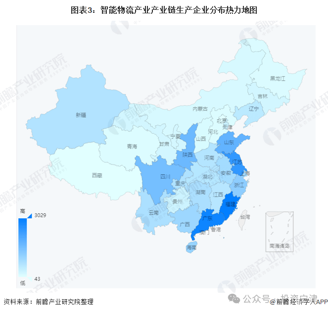 从我国智能物流产业链企业区域分布来看,智能产业产业链企业主要分布在广东地区,其次是在福建、江苏等地区。