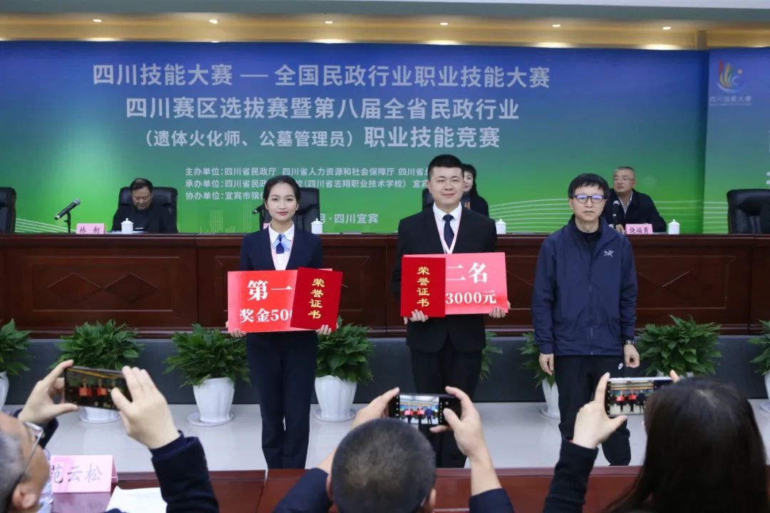 经过两天的激烈角逐,比赛最终决出了一等奖2名、二等奖3名、三等奖10 名。其中,来自眉山市代表队的任伟、宜宾市代表队的向薇分别获得遗体火化师与公墓管理员职业技能竞赛第一名。据悉,两名选手将获得由四川省人力资源和社会保障厅、四川省总工会授予“四川省技术能手”荣誉称号,而比赛名列前茅的选手,也将被推荐代表四川参加全国民政行业职业技能竞赛决赛。