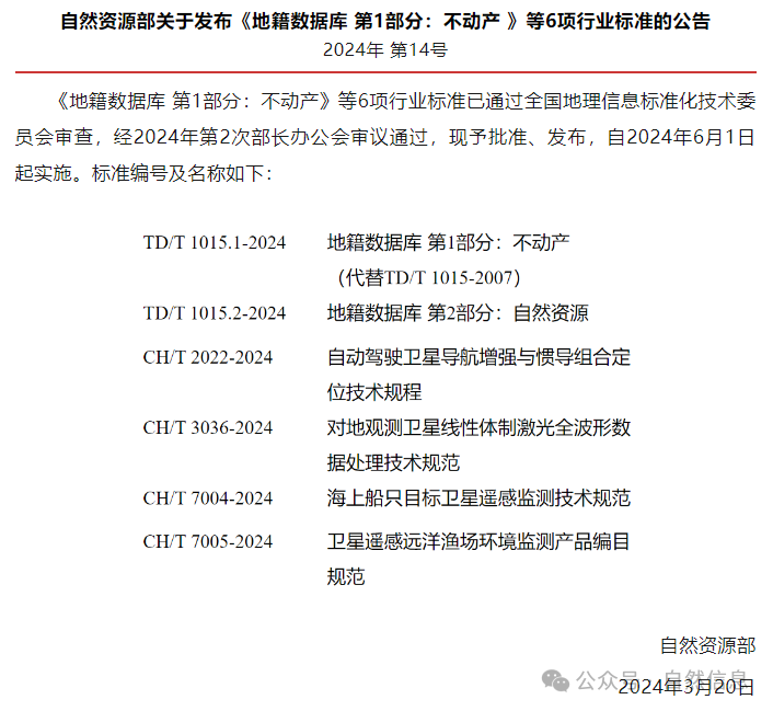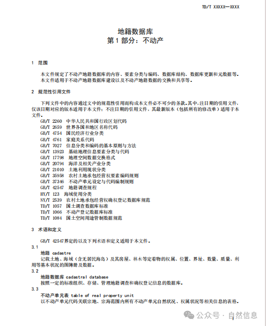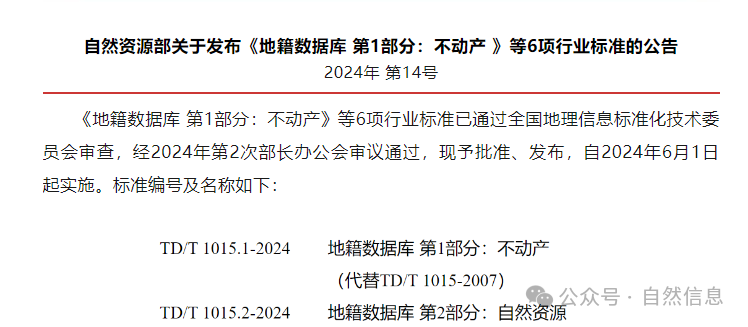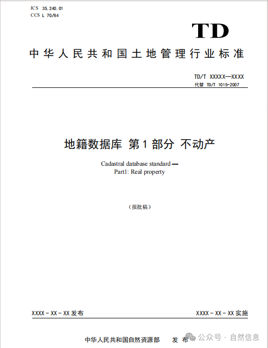 自然资源部今日发布最新行业标准-地籍数据库:不动产