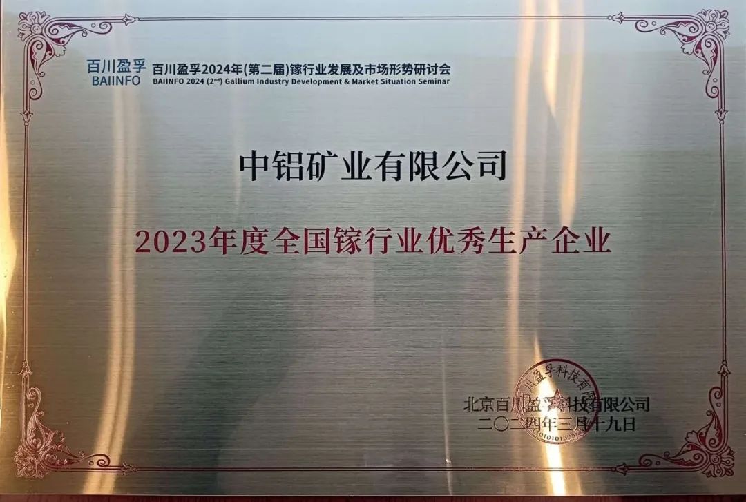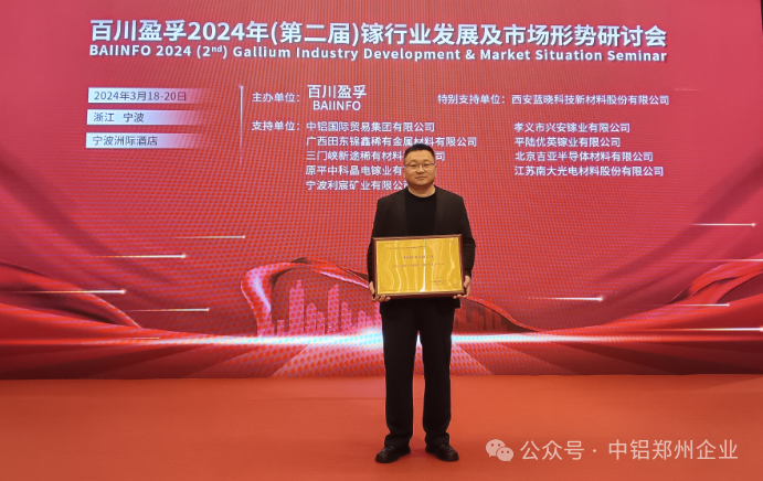 3月20日,从百川盈孚2024年(第二届)镓行业发展及市场形势研讨会传来喜讯:中铝矿业荣获2023年度全国镓行业优秀生产企业荣誉。
