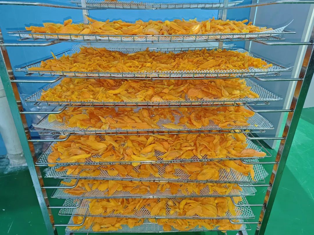 红薯条摆放进烘干车。