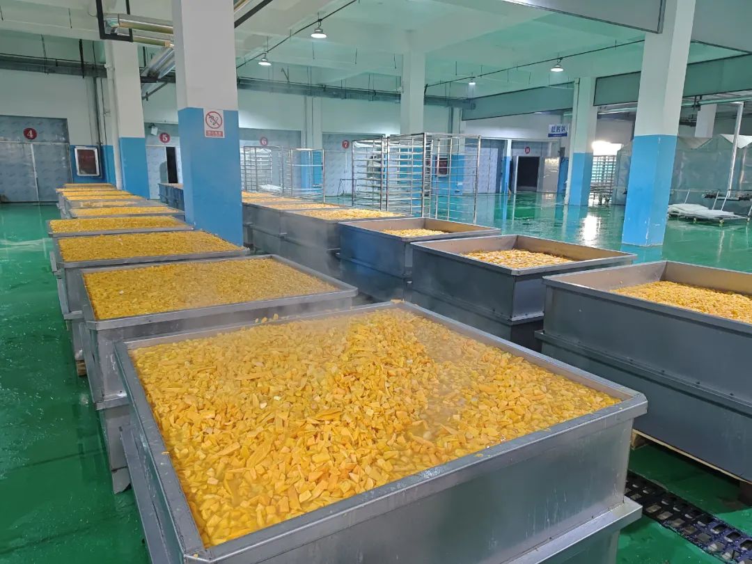 红薯经过削皮后切块进行洗涤。