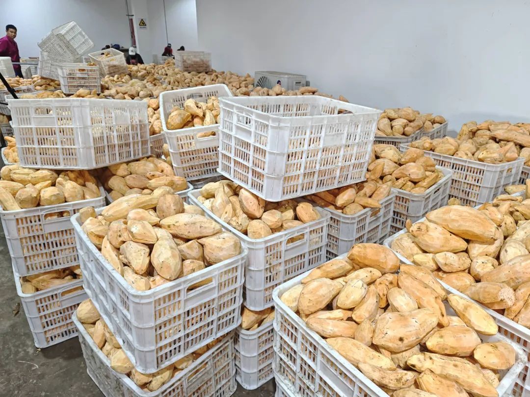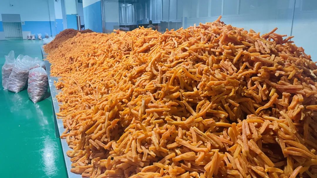 薯类加工厂里百余名村民在忙碌地进行着削皮、切条工作,从育秧到加工,单单红薯这一类产业就让周边300余人在家门口实现就业增收。