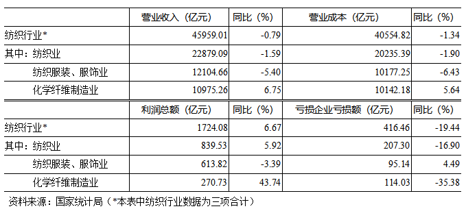 表3 2023年化纤及相关行业经济效益情况