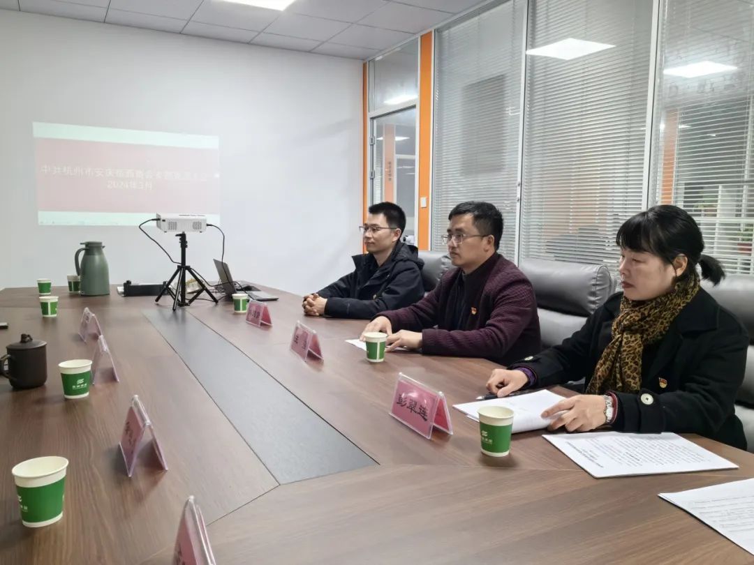 3月18日下午,杭州岳西商会党支部在德清旌旗环境科技(浙江)有限公司会议室召开党员大会,支部书记汪强,支部党员朱国赞、彭翠连参加,商会会长储团结、监事长余晓为、副会长范劲松、王霞萍受邀列席。会议由党支部书记汪强主持。