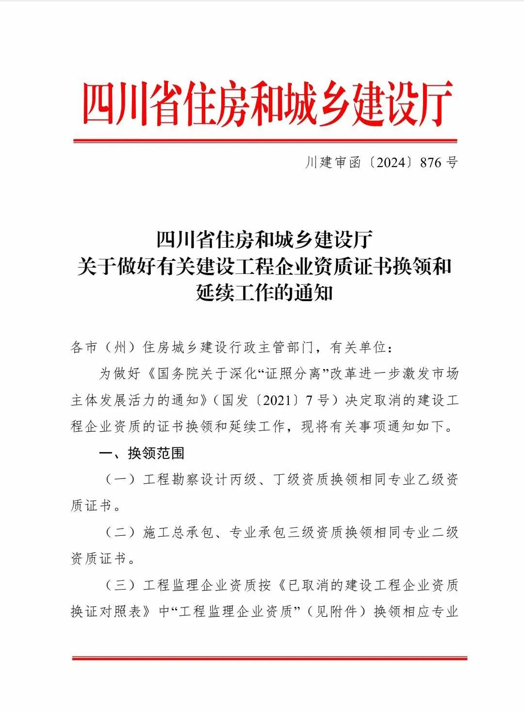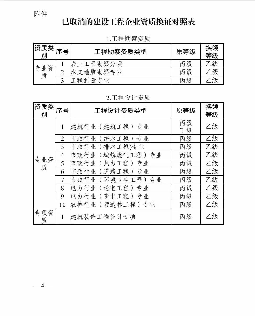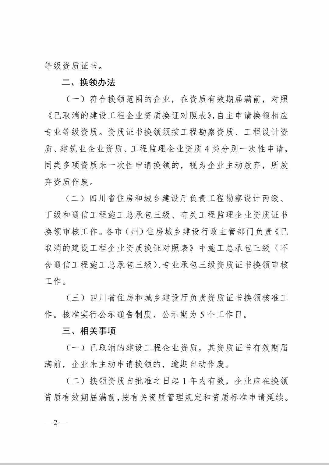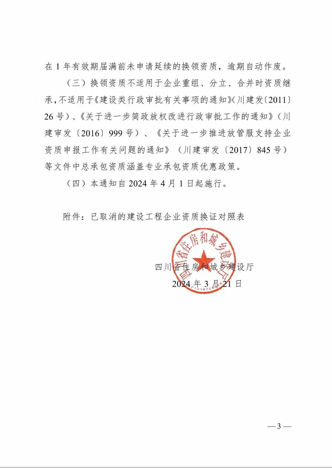 2024年4月1日起施行!工程勘察设计丙级、丁级资质换领相同专业乙级资质证书;施工总承包、专业承包三级资质换领相同专业二级资质证书;工程监理企业资质按《已取消的建设工程企业资质换证对照表》中“工程监理企业资质”( 见附件 ) 换领相应专业等级资质证书。