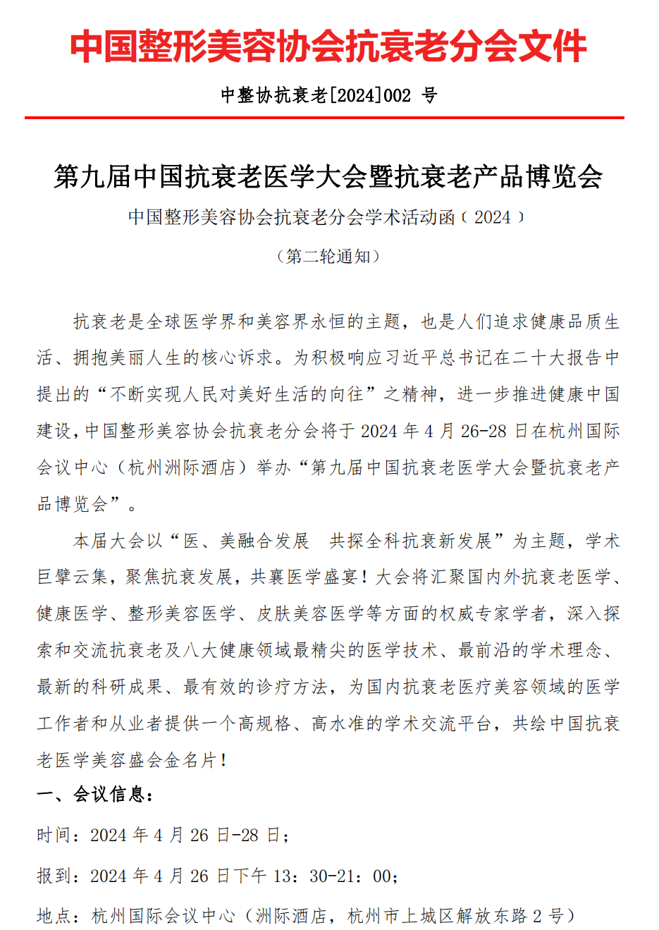 第九届中国抗衰老医学大会暨抗衰老产品博览会 -- 第二轮通知