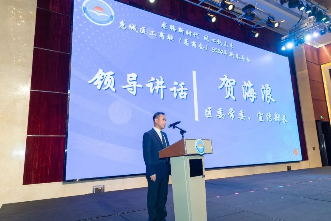 区委常委、宣传部长贺海浪就区工商联和民营经济工作提出希望:一是发挥企业优势,助力惠城发展。在做大做强企业、助力招商引资方面取得更大突破,加快培育新质生产力,不断提升企业的核心竞争力,主动履行社会责任。二是强化政企沟通,优化营商环境。要继续发挥桥梁纽带作用,发挥企业家主体作用,注重完善企业服务机制,支持促进民营企业做强做优。三是加强自身建设,提升服务水平。帮助会员企业开拓市场,解决生产经营中的实际困难和问题,维护企业与经营者的合法权益,把工商联这个“民营企业之家”建设的更加坚强有力。