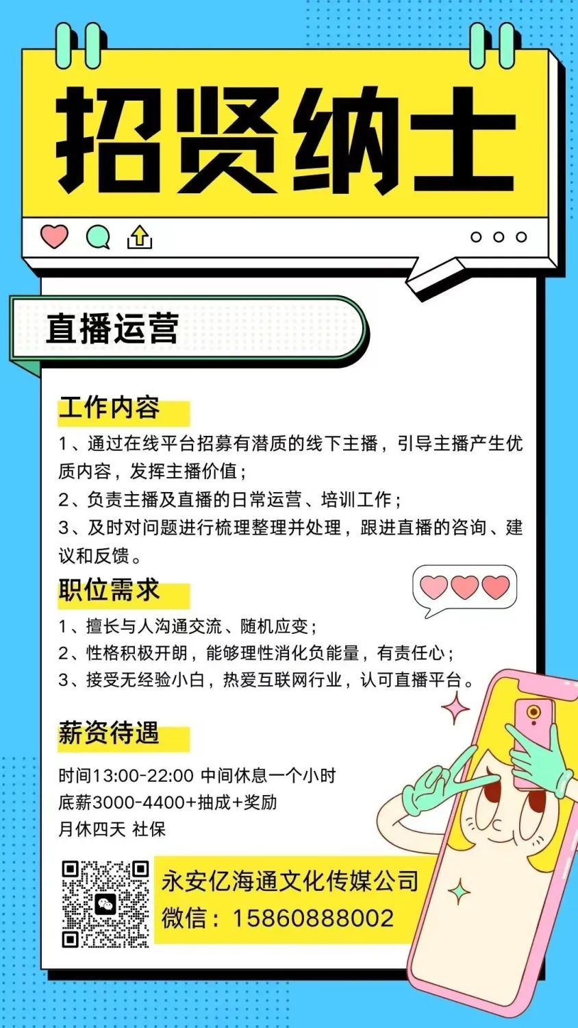 1、工作内容:主播