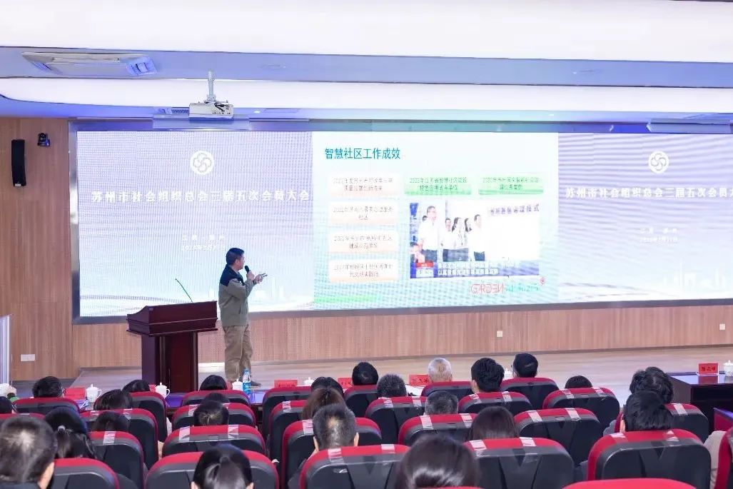 商会会员许陈圣企业苏州伽顿全盛信息科技有限公司作“社企合作重塑智慧社区新生态”的主题分享;苏州市福建商会办公室主任柳小敏代表商会参会。