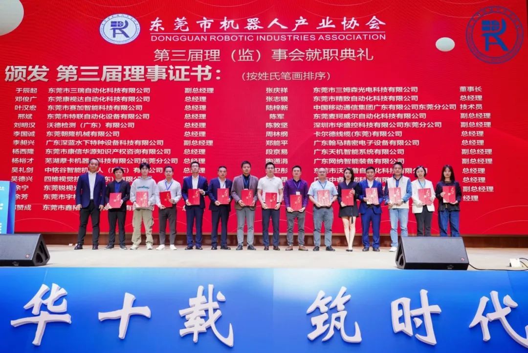 2024年3月21日下午,东莞市机器人产业协会召开换届选举会议,选举产生新一届理事会领导班子成员。会议邀请东莞市科学技术协会副主席叶久根、东莞市民政局社会组织事务中心副主任刘涛出席见证。